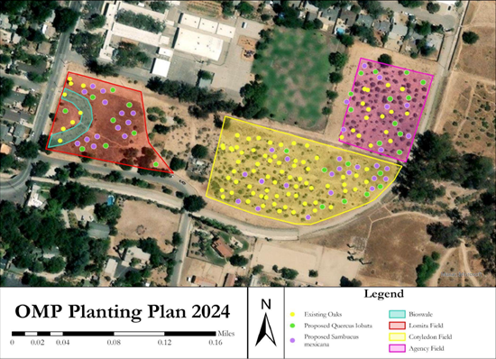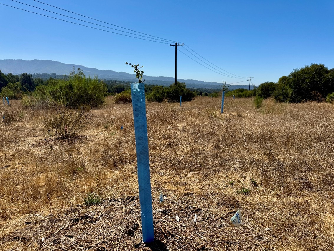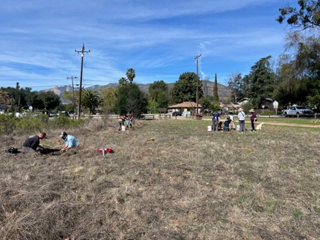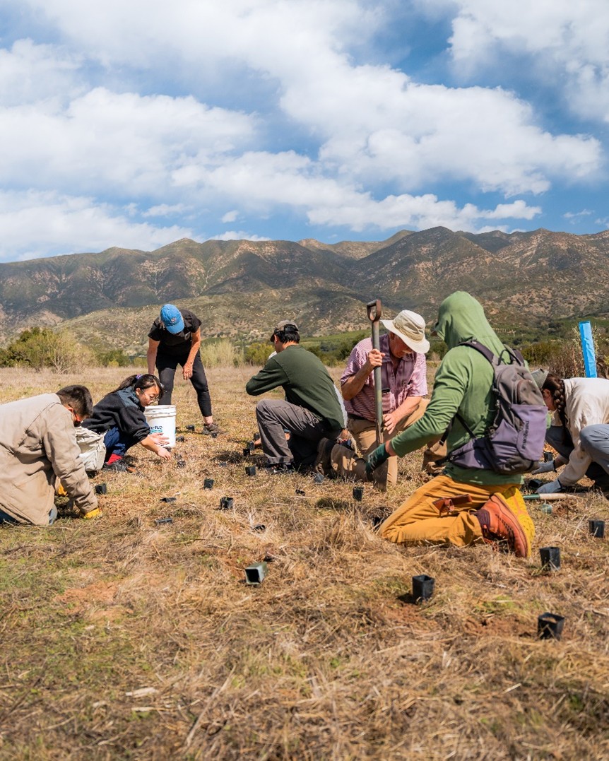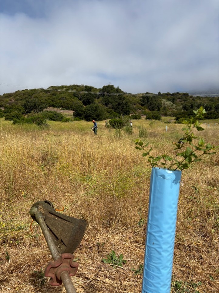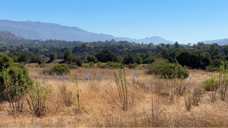 Ojai Valley Land Conservancy (OVLC) manages a restoration site along the Ventura River Preserve. Previously an orange grove, OVLC has planted 100 oak circles and 300 companion plants within the 4-acre planting site. They maintain the site by bringing in eager volunteers, interns, and staff, providing learning opportunities about the importance of restoration and native oak woodlands.
