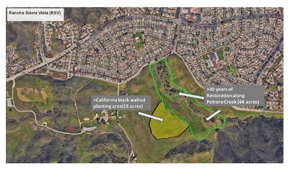 The Santa Monica Mountain Fund (SAMO) has been working on restoring an area along Potrero Creek since 1995. SAMO will be installing 3,000 local native black walnut trees, which are facing a decline in population within California. This site provides opportunity for volunteering, more specifically to low-income community members. The restoration site will also provide important wildfire resilience near the nearby residential communities.