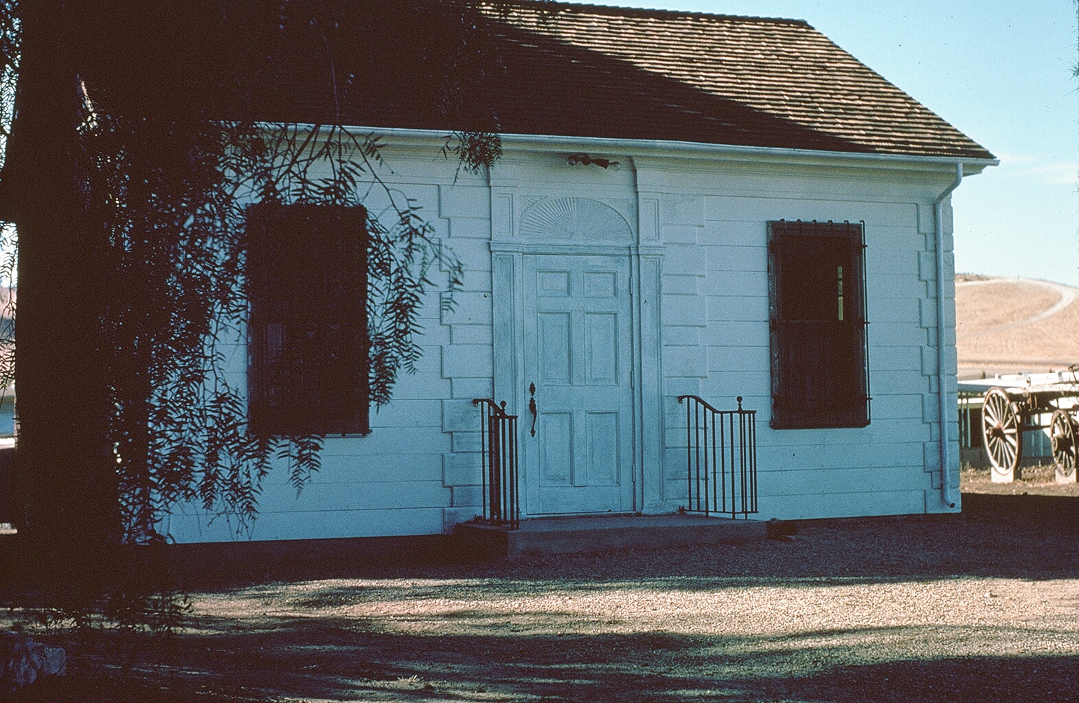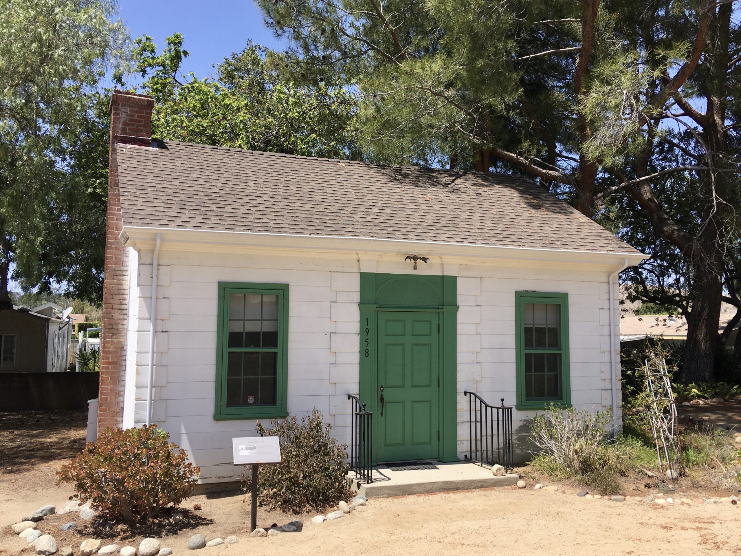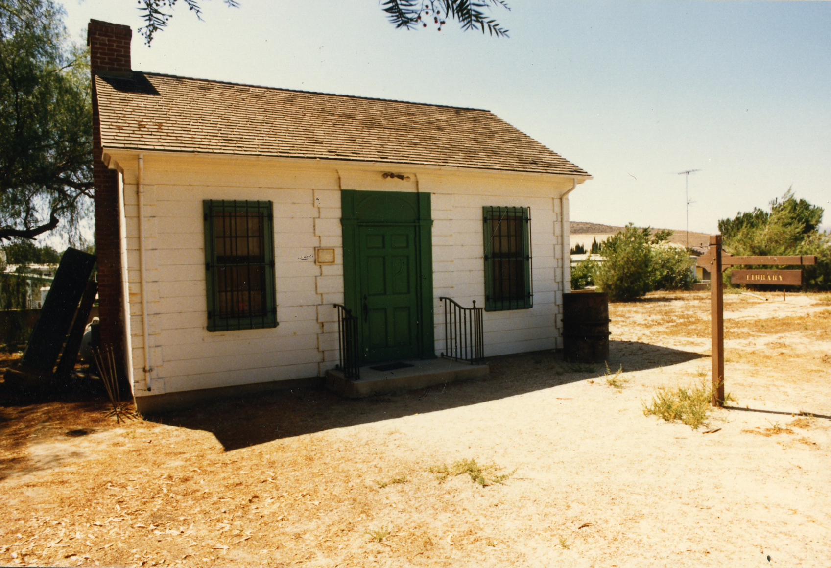 This quaint square one-room library building was built and added to the Ventura County library system after local citizens raised the money for the land in 1930. There had been numerous county branches here and there, using a spare room in a church or school, or even in a home, but this was the first purpose-built branch library building. It served the community until the early 1960s when a new library was dedicated on Church Street in the Community Center. It subsequently was the first Simi Valley Museum before Strathearn Historical Park was established in 1969. Originally located on Third Street near Los Angeles Avenue, the building was moved to Strathearn Historical Park in 1971. Designed by Sanford Rudolph; builders were Costello and Lane. (Other landmarks located at Strathearn Historical Park: No. 6, 41, 91 and 93.)